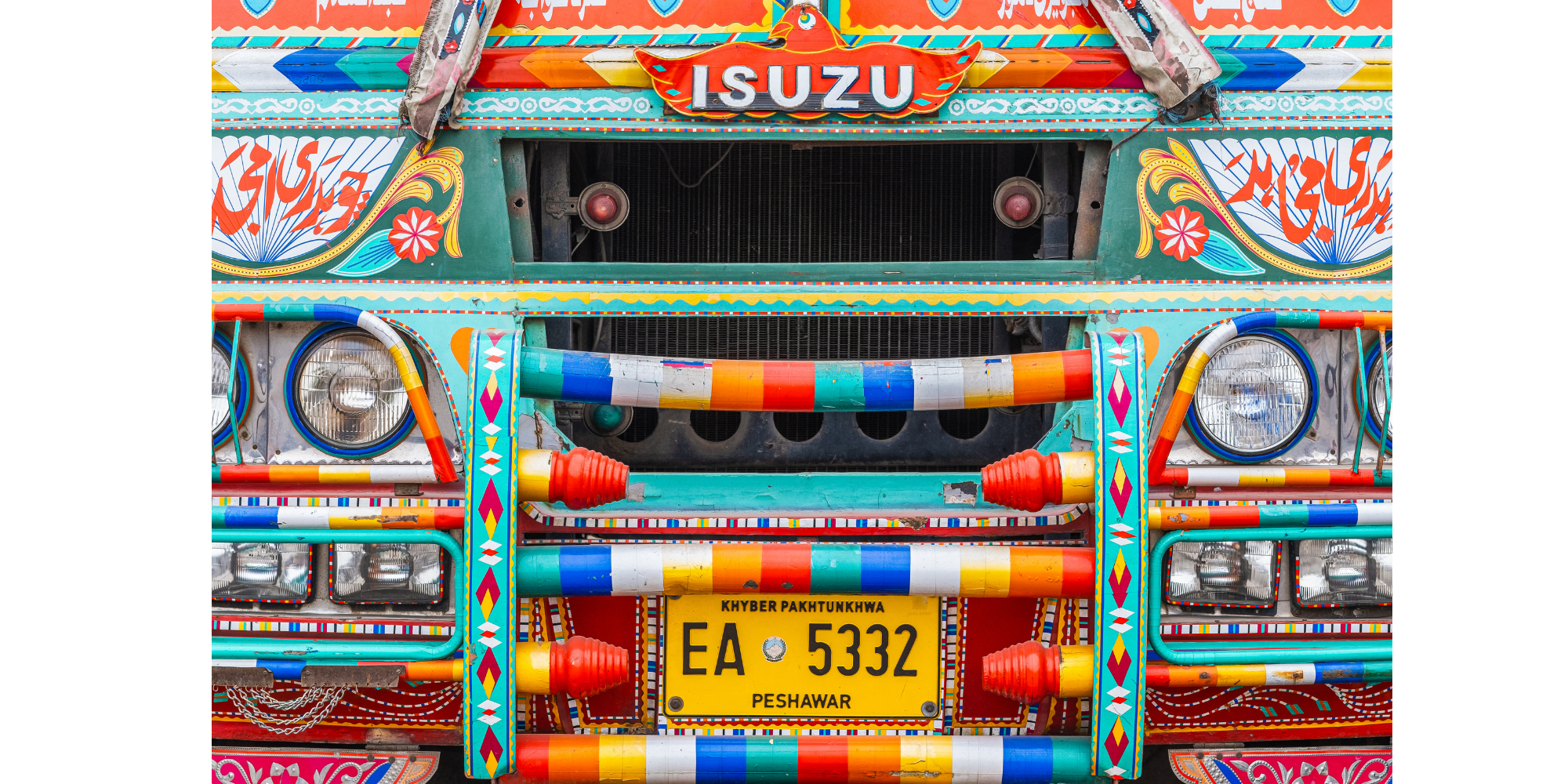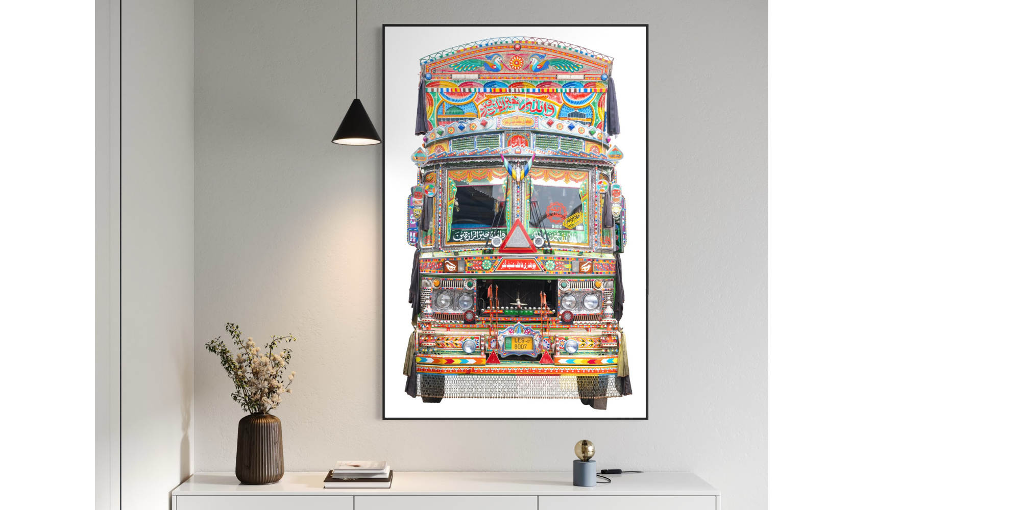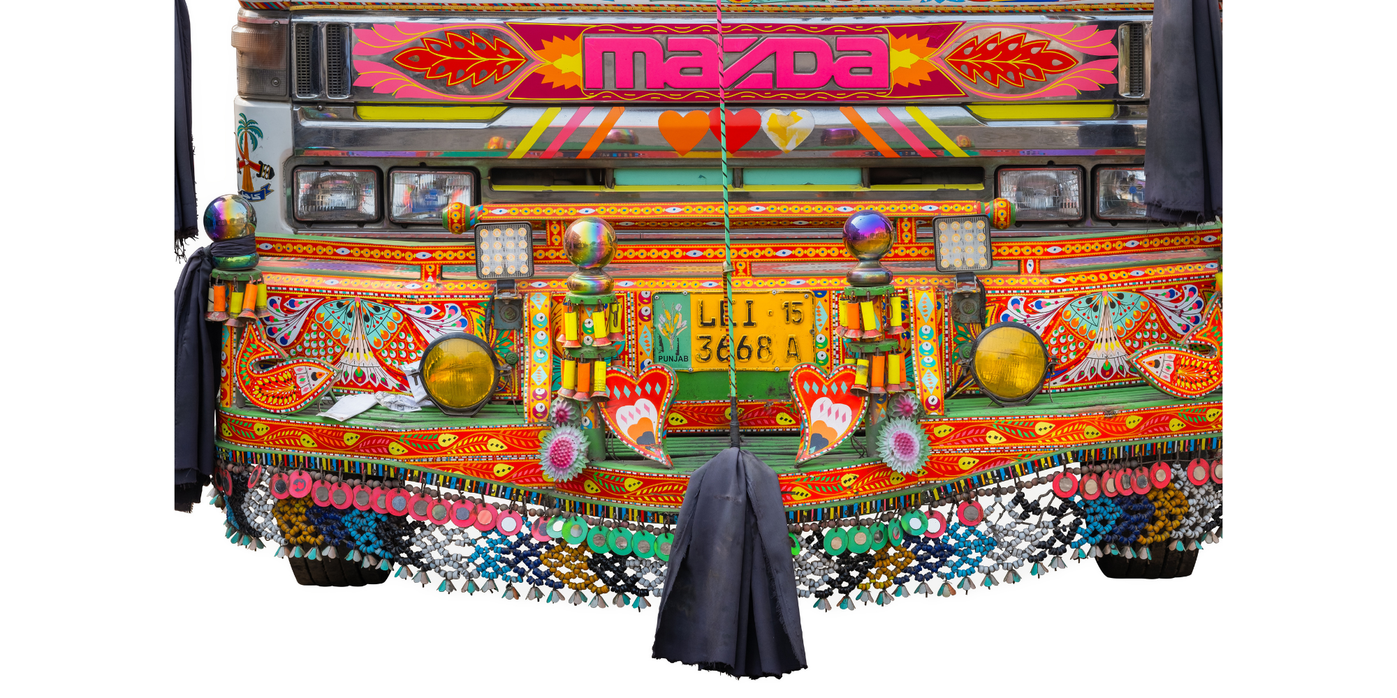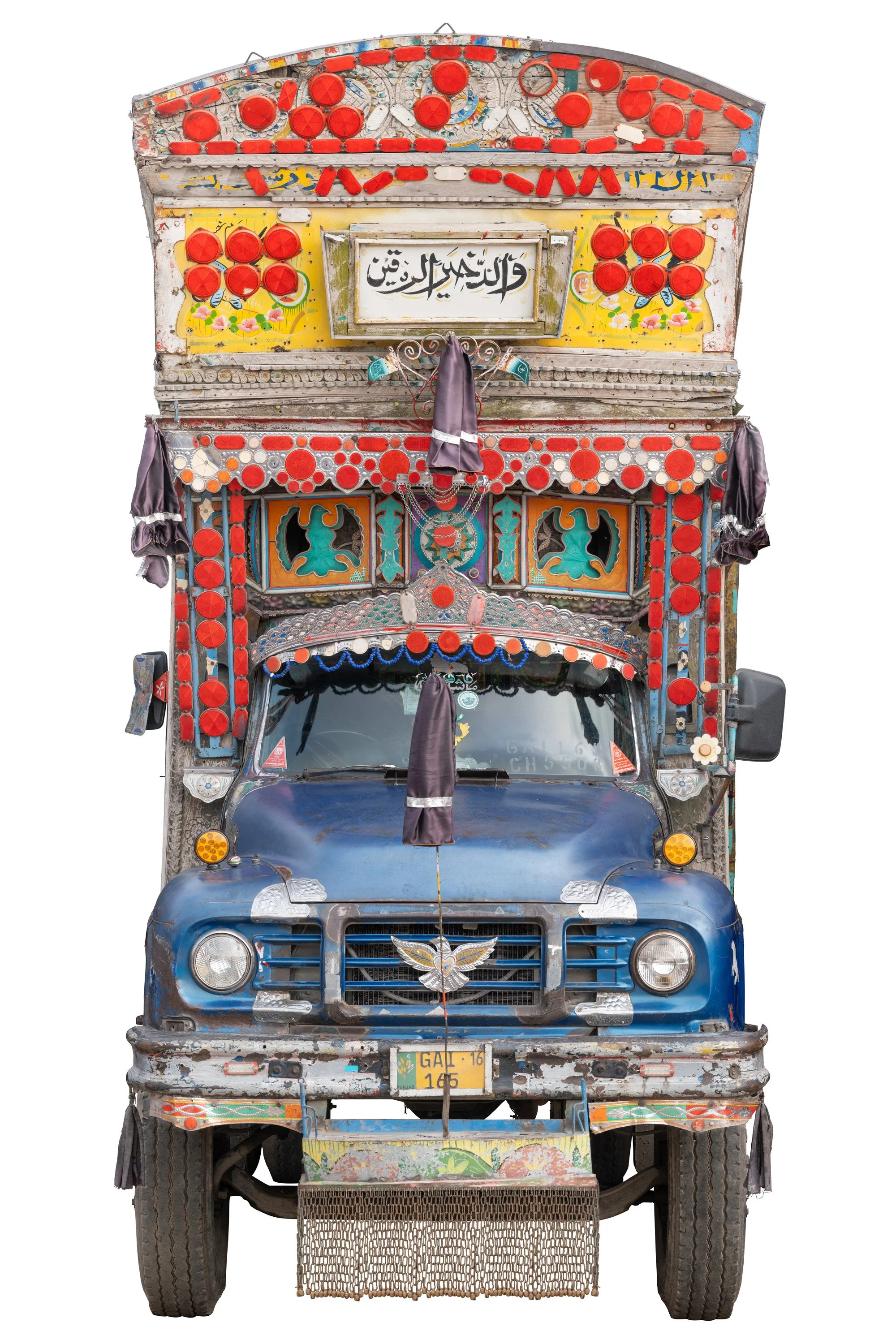 Während einer Reise durch Pakistan im Jahr 2013, die länger dauerte als geplant, entstand die Serie TRUCKS.13. Sie dokumentiert eine Bildkultur, die den öffentlichen Raum dominiert und dennoch zutiefst persönlich ist: kunstvoll gestaltete Lastwagen, die täglich unterwegs sind und zugleich individuelle Statements tragen.