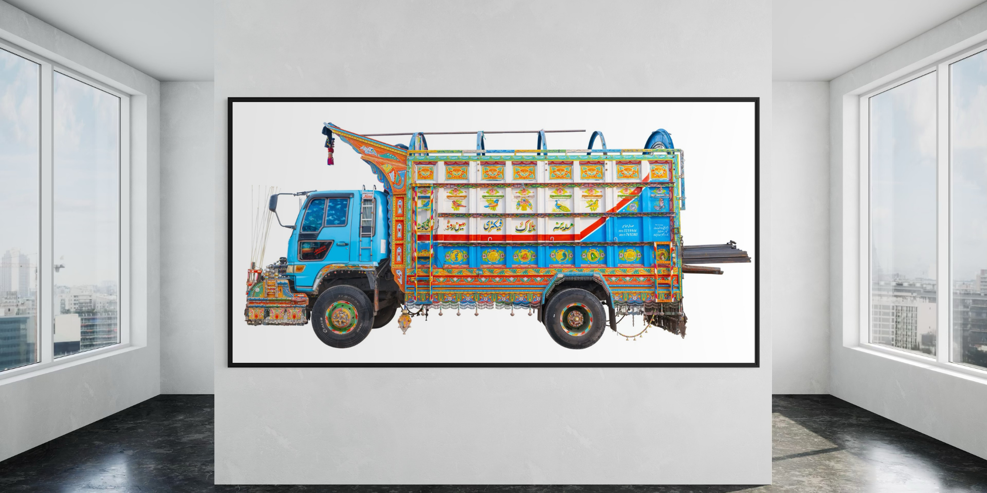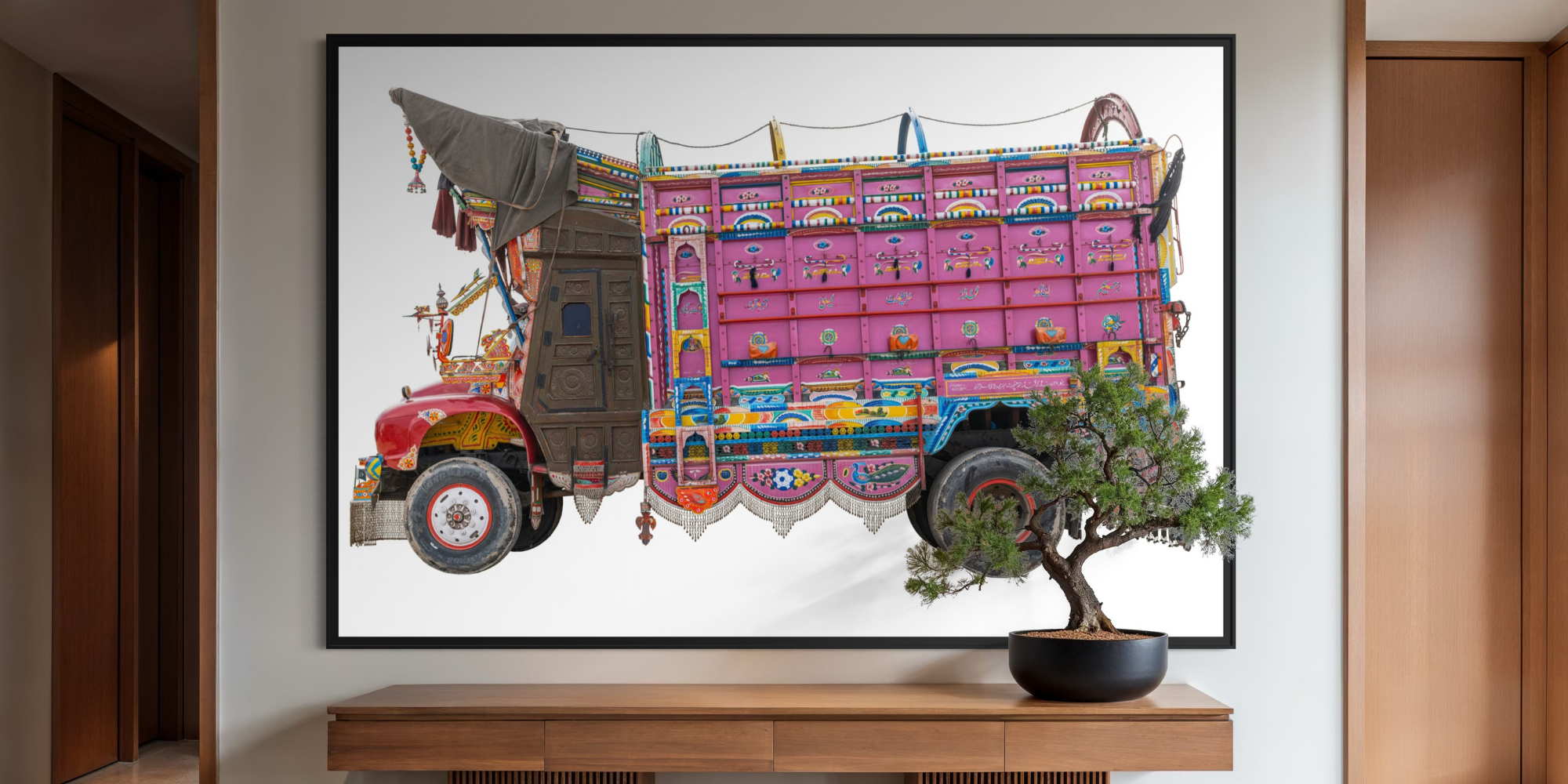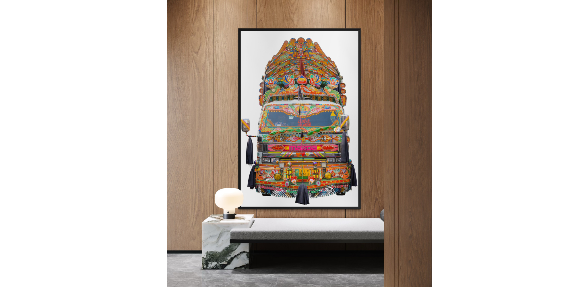 Während einer Reise durch Pakistan im Jahr 2013, die länger dauerte als geplant, entstand die Serie TRUCKS.13. Sie dokumentiert eine Bildkultur, die den öffentlichen Raum dominiert und dennoch zutiefst persönlich ist: kunstvoll gestaltete Lastwagen, die täglich unterwegs sind und zugleich individuelle Statements tragen.
