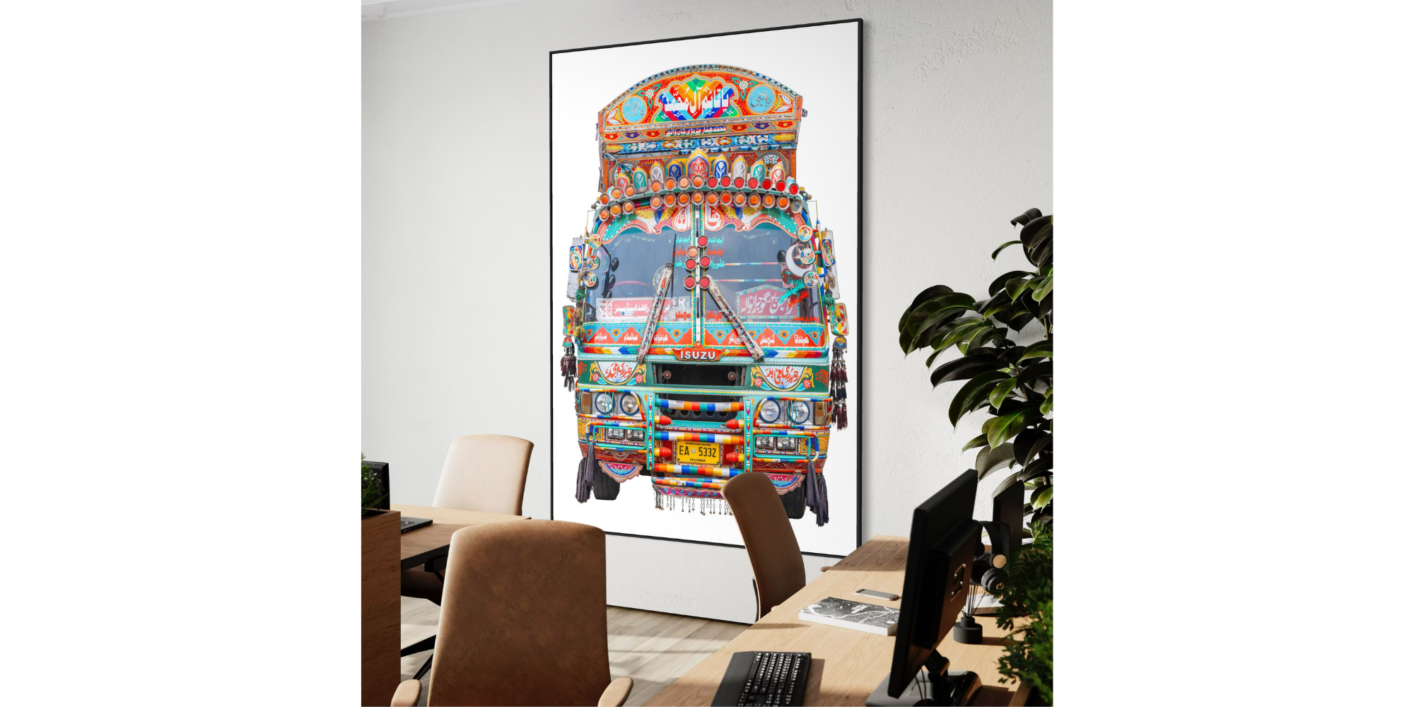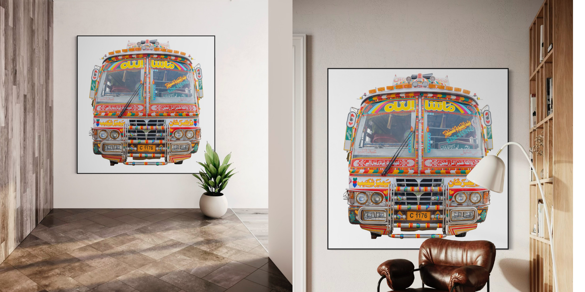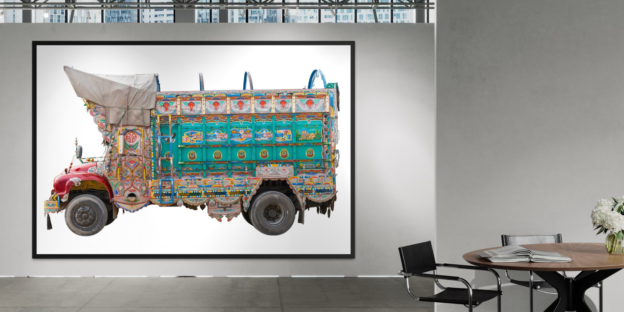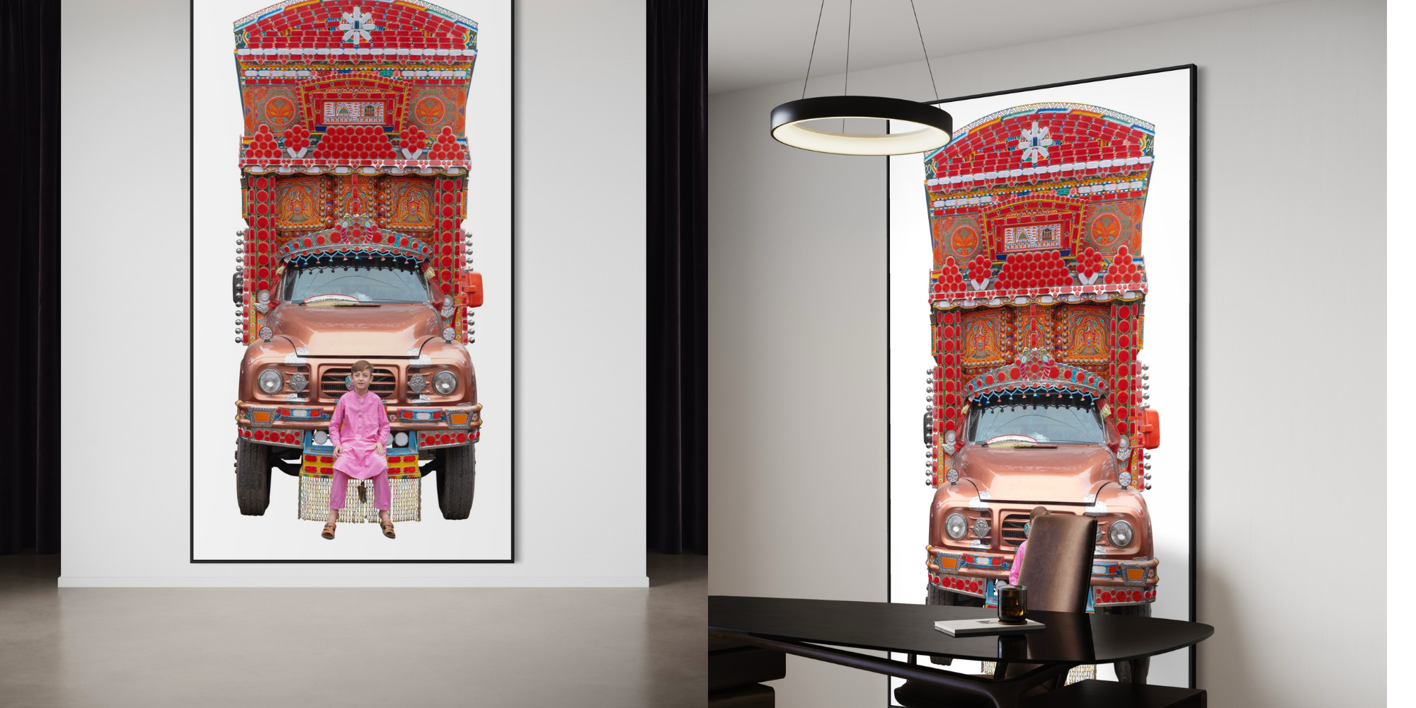 Während einer Reise durch Pakistan im Jahr 2013, die länger dauerte als geplant, entstand die Serie TRUCKS.13. Sie dokumentiert eine Bildkultur, die den öffentlichen Raum dominiert und dennoch zutiefst persönlich ist: kunstvoll gestaltete Lastwagen, die täglich unterwegs sind und zugleich individuelle Statements tragen.